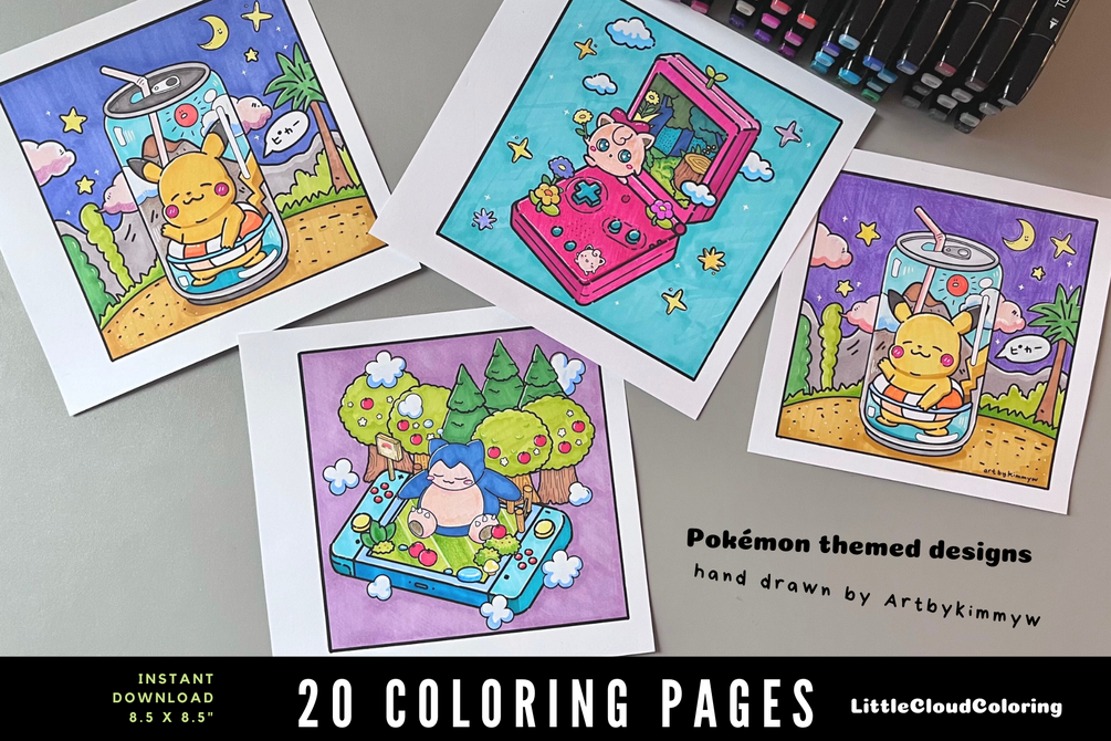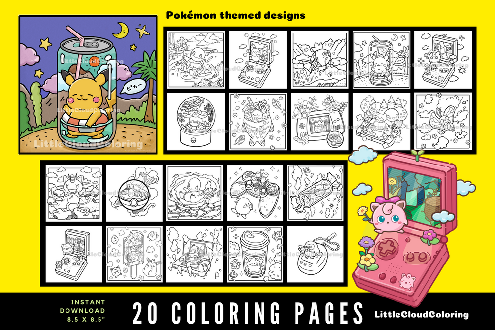 Pokémon Coloring Book Vol 1 - 20 Hand drawn coloring pages ( Digital Download)